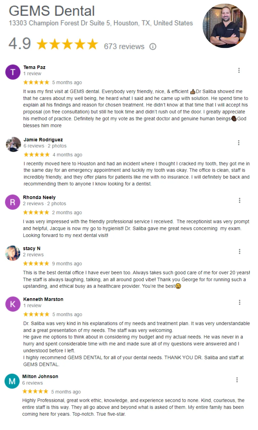 Over 27 Years of Experience in Dental Implant and Implant-Retained Dentures. Dr. George Saliba is an experienced provider in Houston, Texas who will always have you smiling with confidence. With over 650+ 5-Star Google reviews, don't trust your smile to just anyone.
